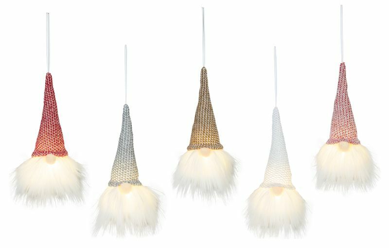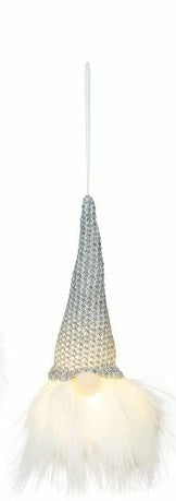 Silver Sweater Cap Gnome Ornament with Light