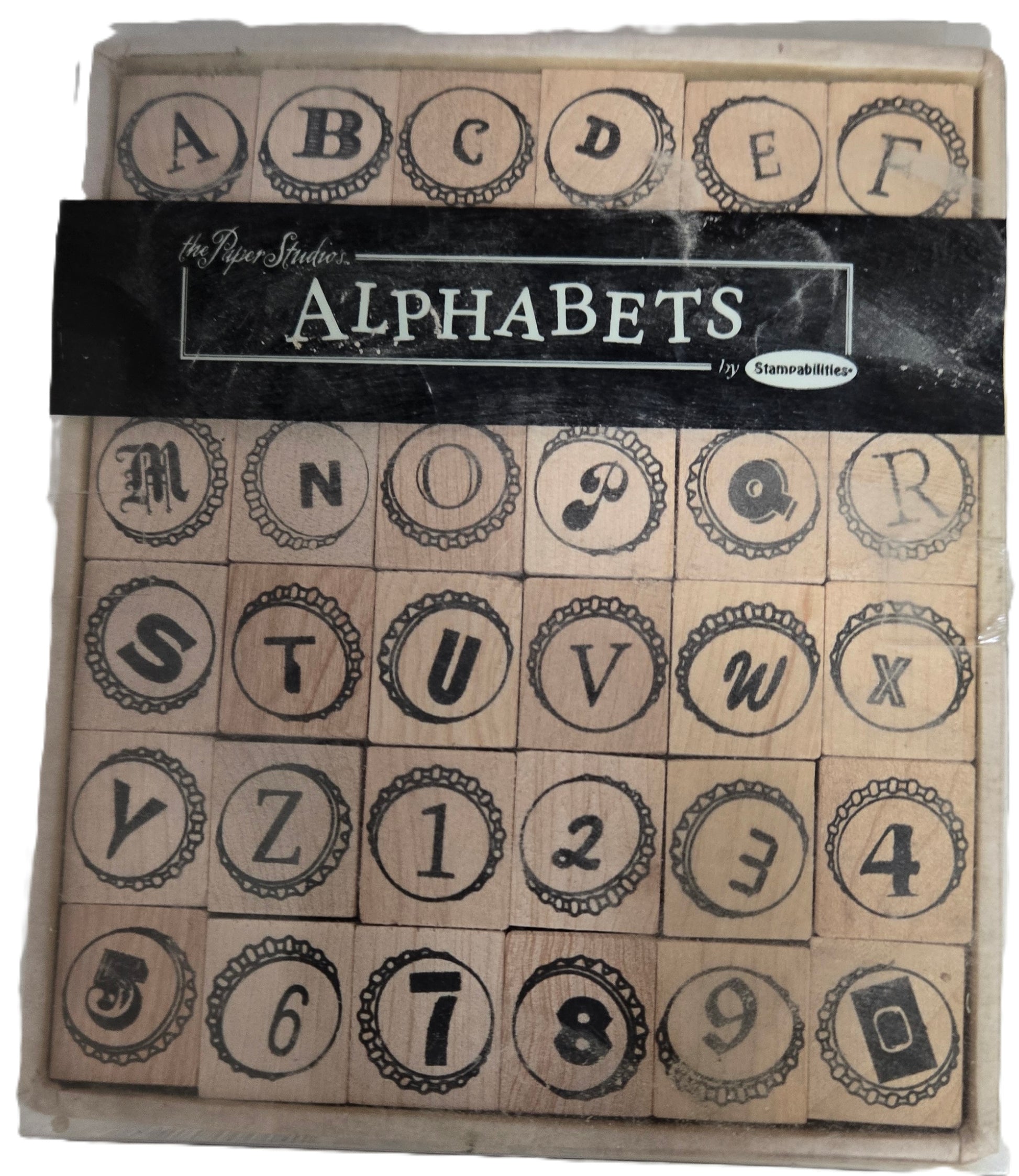 Wooden Bottlecap Round Letter Alphabet Stamp Set